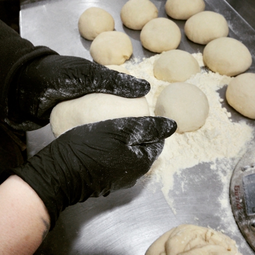 Il pane viene impastato tutti i giorni, preparato a mano e cotto in forno.