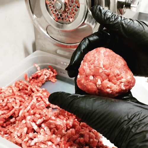 La carne fresca viene tritata quotidianamente, preparata sotto forma di hamburger senza aggiungere altro, e cucinata sul momento.